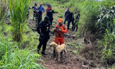 Foi mobilizada uma equipe especializada em busca e resgate, com o apoio de um cão farejador para auxiliar