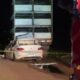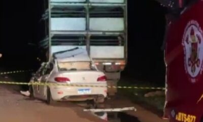Após a batida, carro teve princípio de incêndio, que foi controlado pelos bombeiros.