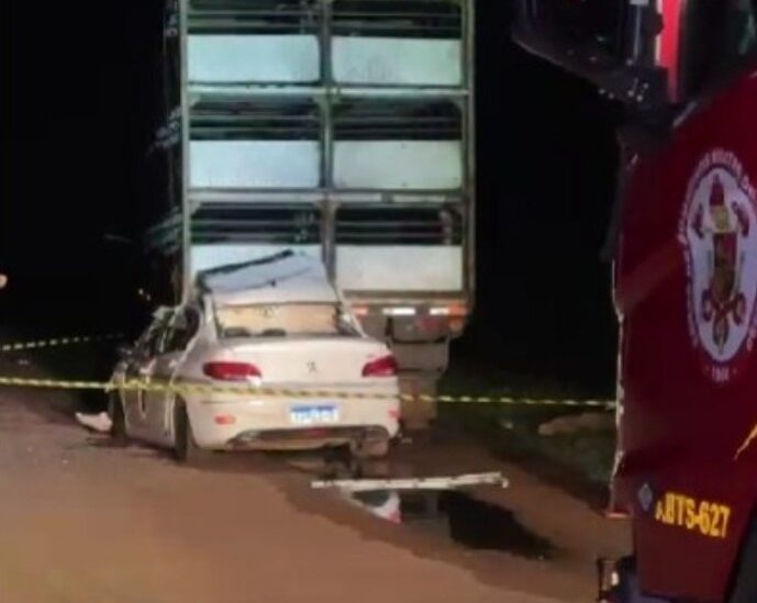 Motorista morre após carro ficar cravado em traseira de caminhão na MT-235
